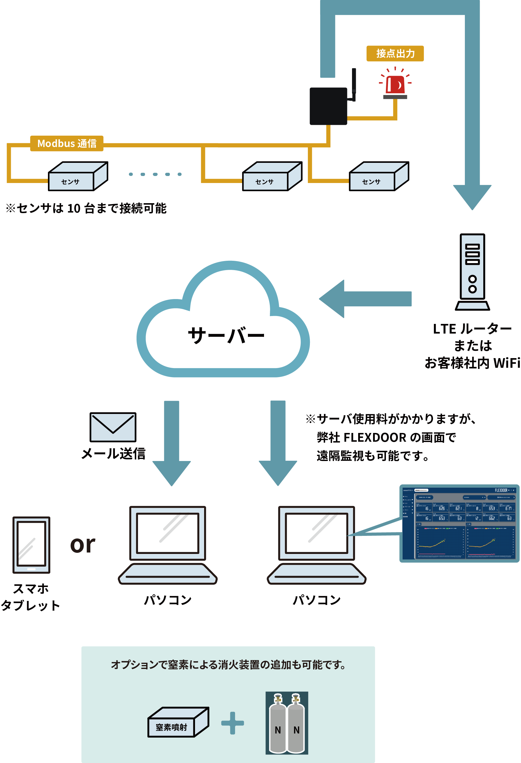パトランプやブザーは、お客様がお持ちのものを使用することも可能です。弊社でのご用意も承ります。また、通信費は別途かかりますが、弊社にてLTEルータをご用意することも可能です。